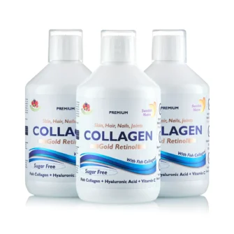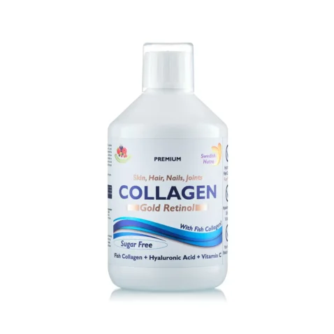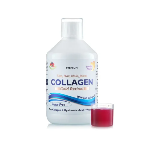 Colagen Gold Retinol fara zahar (din Peste) -Lichid, Hidrolizat Tip 1 si 3 cu 10.000 mg + Retinol 800 mcg + Biotina + MSM + Acid Hialuronic + Zinc + Seleniu + Siliciu + Vitamine – 500 ml